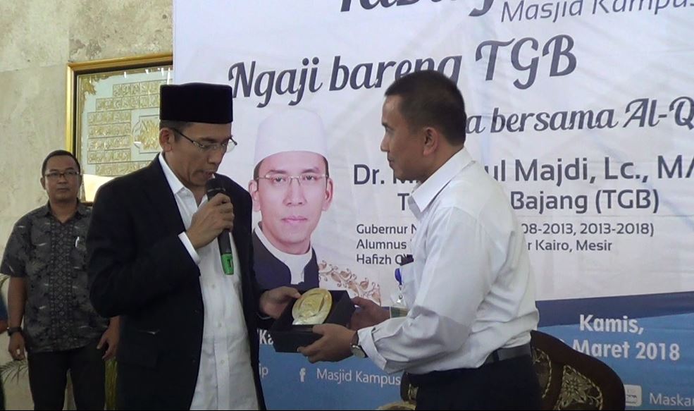 Sebelum acara ditutup, TGB bersama tim nya memberikan kenang-kenangan kepada masjid kampus Undip dan kepada Undip. kenang-kenangan tersebut berupa mushaf NTB yang diserahkan kepada Prof. Luthfi Djauhari selaku Sekretaris Takmis Masjid Kampus Undip